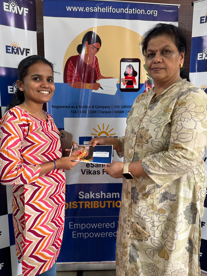 eSaheli Mahila Vikas Foundation is a Section 8 non-profit dedicated to empowering women through free skill-based education. We break financial and geographical barriers by distributing Saksham Cards that unlock access to online courses in regional languages. Our mission is to help women achieve financial independence, dignity, and self-reliance.